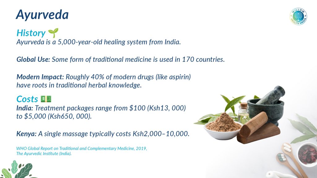 In Kenya, Ayurvedic clinics operate in cities like Nairobi. Some insurance providers now partner with Ayurvedic institutions to cover alternative treatments. Kenya’s National Drug Policy (1994) and Development Plan (1989) acknowledge the value of traditional medicine.