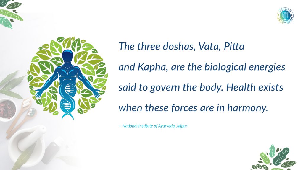 Ayurveda views health as a state of balance among three biological energies, or The Three Doshas: