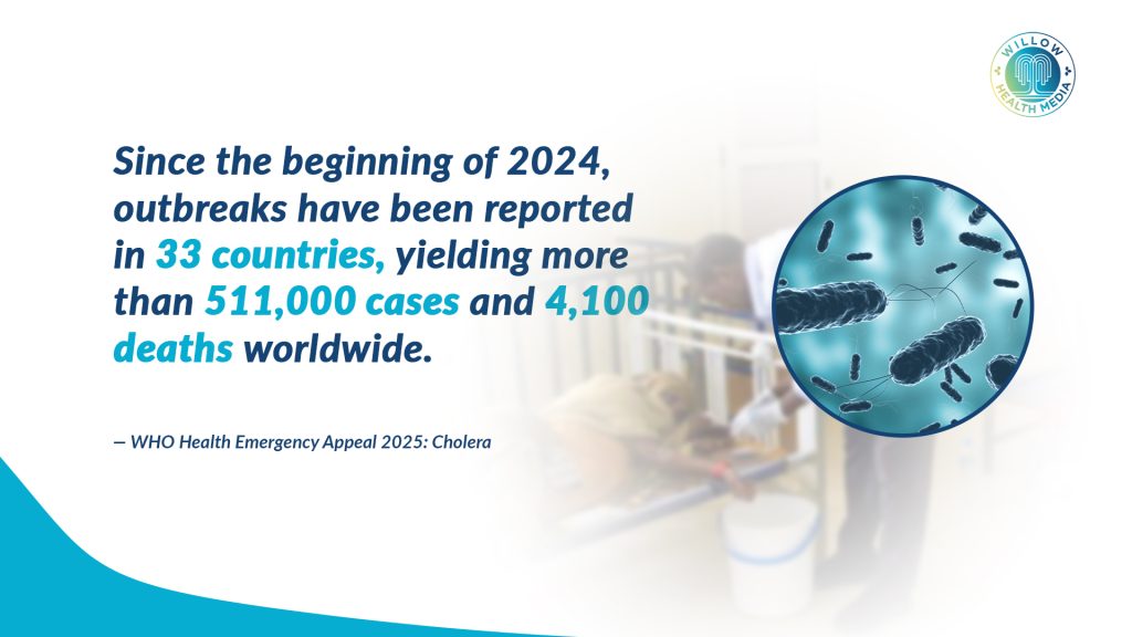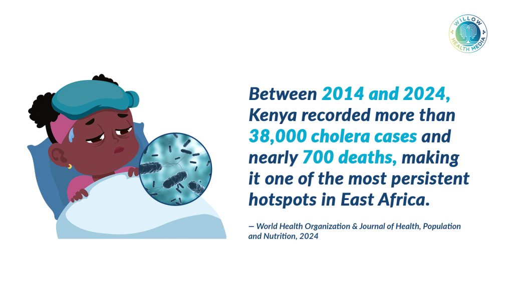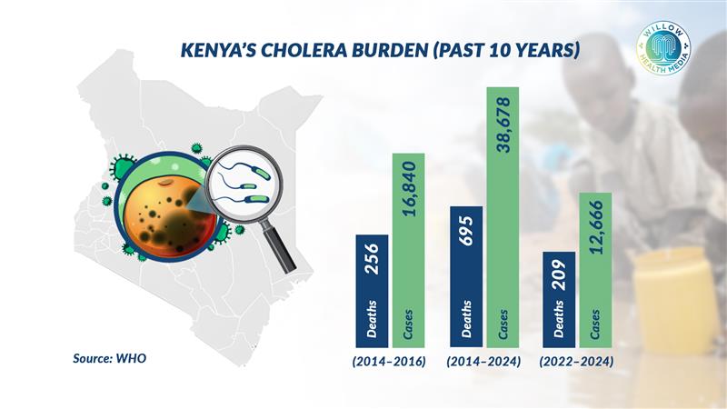 WHO notes that cholera, caused by the Vibrio cholerae bacterium, remains a major public health concern in Kenya. Between January 2022 and December 2024, more than 12,666 cases and 209 deaths were recorded. A 2024 ResearchGate analysis found that Kenya had logged at least 38,678 cases and 695 deaths over the past decade, with the deadliest outbreaks occurring between 2014 and 2016.