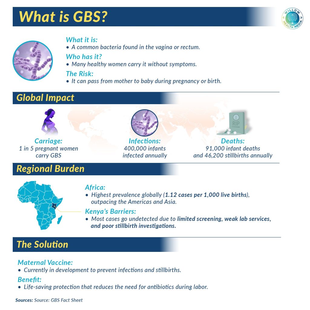 GBS has been known to cause serious infections in newborns for decades. What makes it particularly dangerous in Kenya and sub-Saharan Africa is a combination of factors. It cannot be detected without a specific test that most facilities cannot perform. It spreads from mother to baby during birth without either being aware. And by the time the sick baby reaches a hospital equipped to treat it, it is often too late.