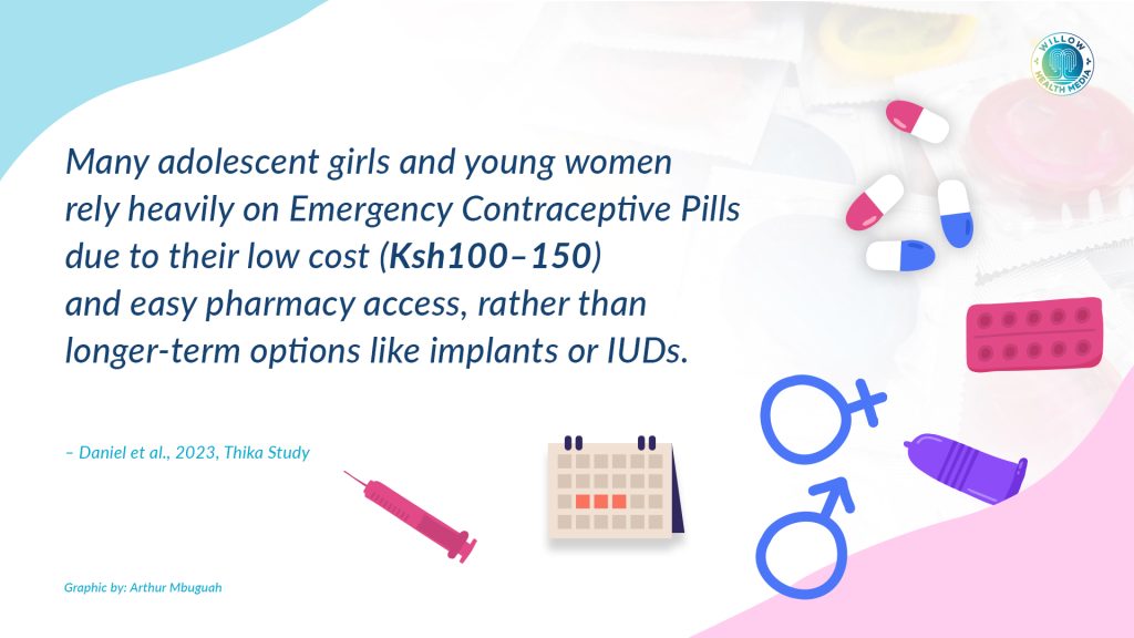 This is due to their convenience, low cost (Ksh100-Ksh150), and easy access at pharmacies, which eliminates the need for follow-up visits or appointments at public hospitals for longer-term options like implants or intrauterine devices (IUDs).