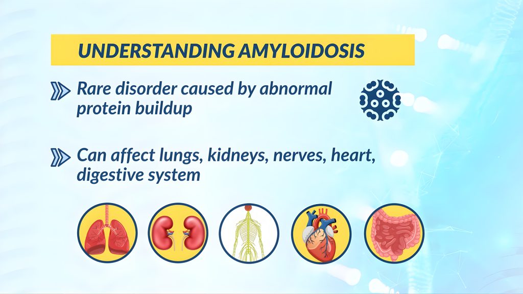 That test changed everything. Jabali was diagnosed with amyloidosis, a rare condition caused by abnormal proteins called amyloids building up in the body’s organs. These proteins interfere with normal function and can damage vital systems like the lungs, heart, kidneys, and nerves.