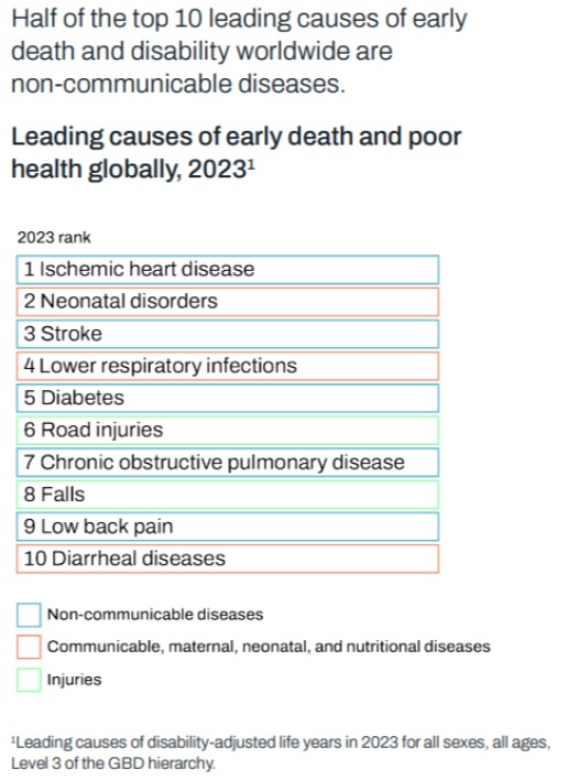By 2023, those “causes of poverty,” as GBD Director Dr Christopher Murray described them, had declined sharply, while diabetes, cardiovascular disease, cancers, and mental disorders surged to the top.