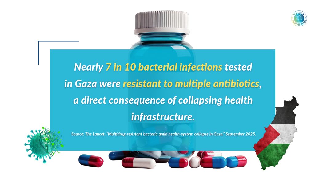 In Gaza, where Israel’s military offensive since October 7, 2023, has devastated health facilities, AMR has surged amid overcrowded hospitals, limited diagnostics, and dwindling antibiotic supplies.