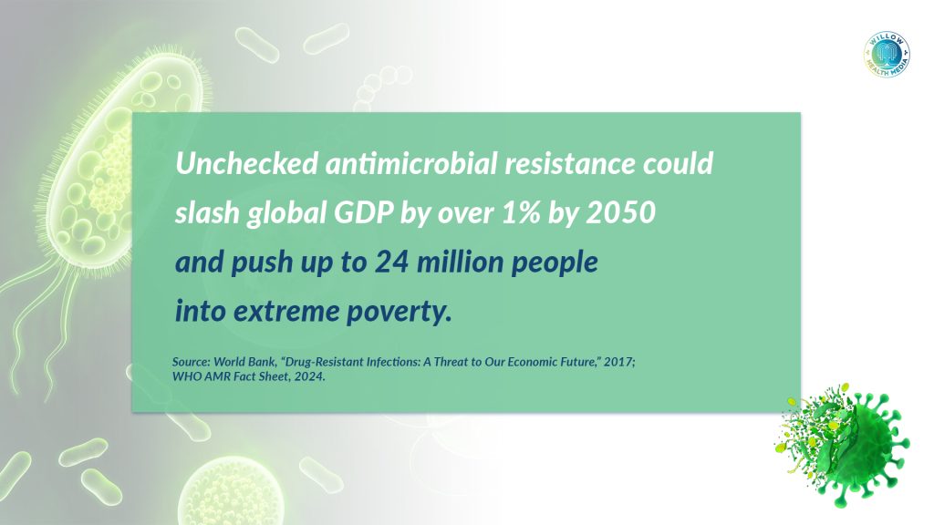 Beyond health, AMR poses a growing economic threat. The WHO projects that unchecked resistance could reduce global GDP by more than 1 per cent by 2050, pushing millions into poverty and straining already burdened health systems.