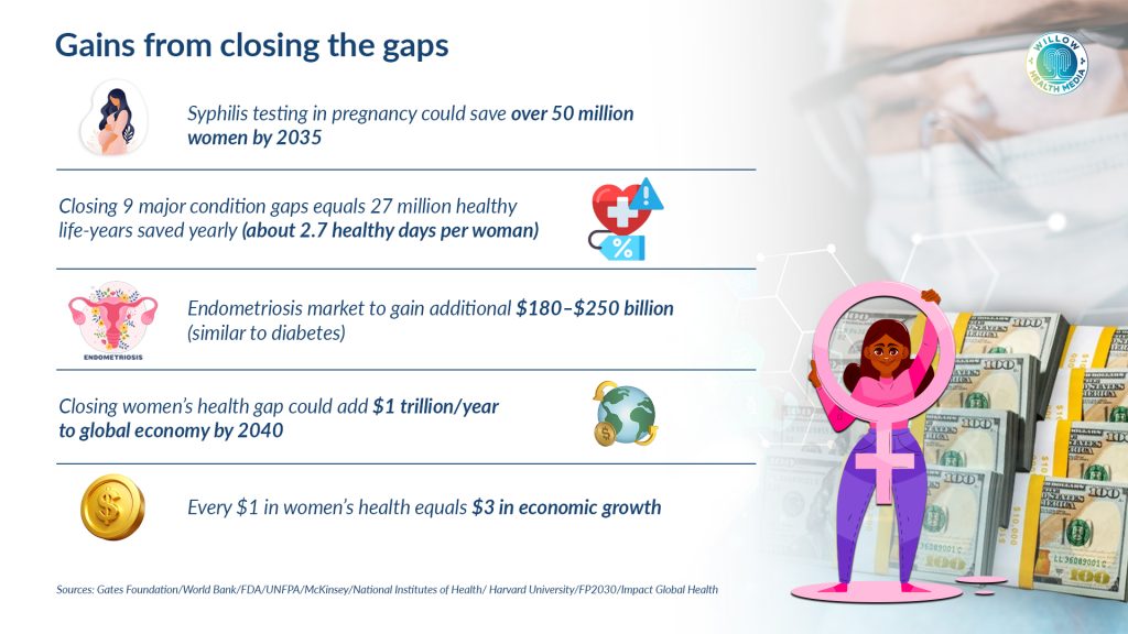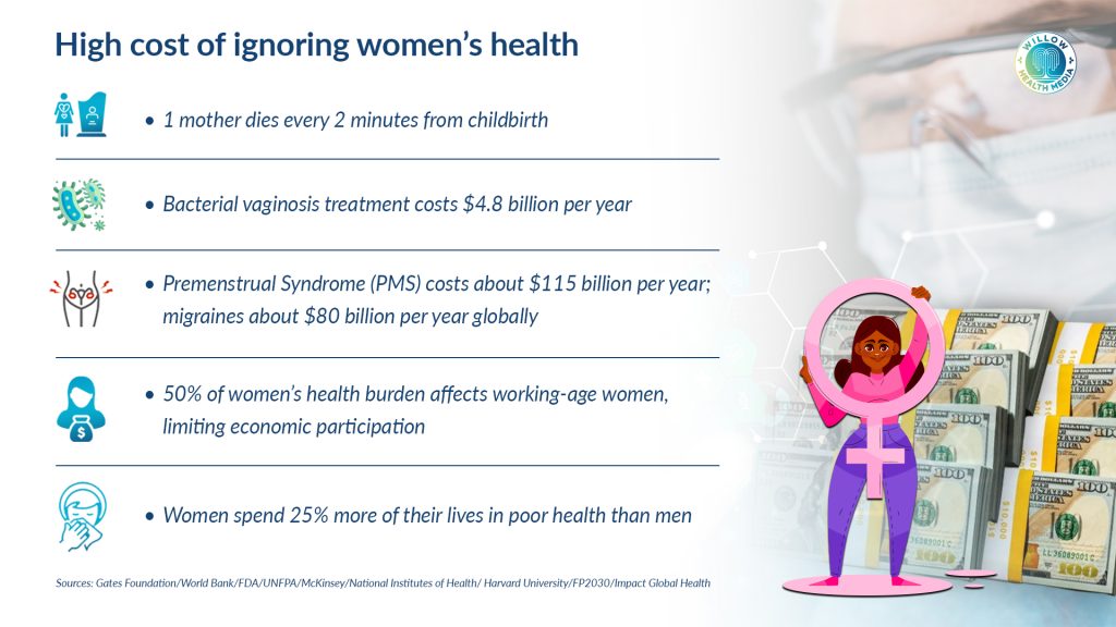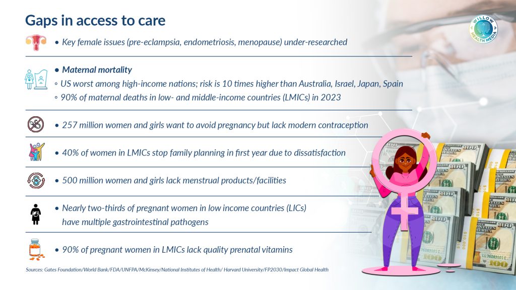 According to the Gates Foundation, women’s research is underfunded, under-researched and underserved. This position is shared by McKinsey & Company whose 2021 analysis found that only one per cent of healthcare research and innovation is invested in female-specific conditions and beyond oncology.