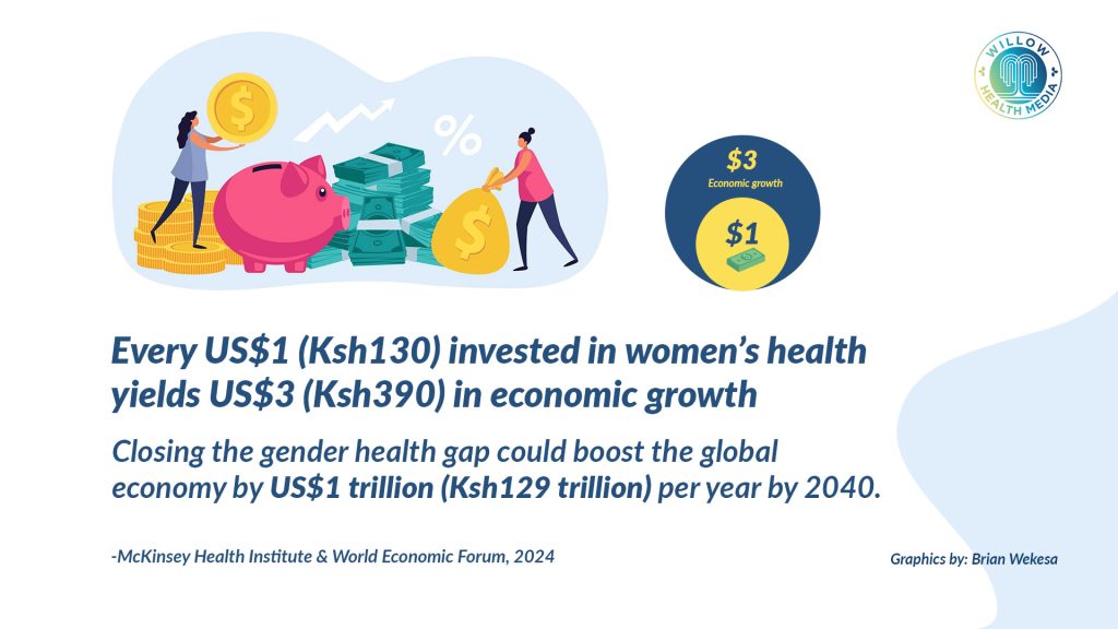 Beyond the moral imperative to address women’s health needs, the investment carries significant economic implications. Research indicates that every $1 (Ksh130) invested in women’s health yields $3 (Ksh390) in economic growth, and closing the gender health gap could boost the global economy by $1 trillion (Ksh129 trillion) annually by 2040.