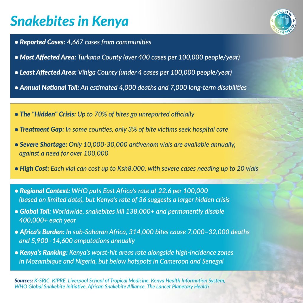 Despite these challenges, Kenya is taking action. The Kenya Snakebite Research and Intervention Centre, working with the Liverpool School of Tropical Medicine, is developing an antivenom tailored to local snake species that would need fewer vials to treat patients. The centre is also rolling out community education and testing new approaches, including mobile technology that links frontline clinicians to specialists in real time.