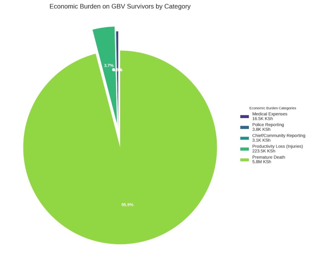 On average, medical-related expenses take up most of the cost at Ksh16,500, followed by reporting the incident to police at Ksh3,800, while the area chief and community structures consume over Ksh3,000 for a survivor of gender-based violence.
