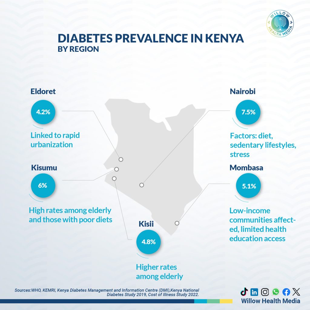 Nairobi, as the capital city, has a significantly higher prevalence of diabetes, driven by lifestyle changes such as poor diets, sedentary lifestyles, and increased stress levels. A study by the Kenya Medical Research Institute (KEMRI) found that about 7.5% of Nairobi’s population has diabetes.