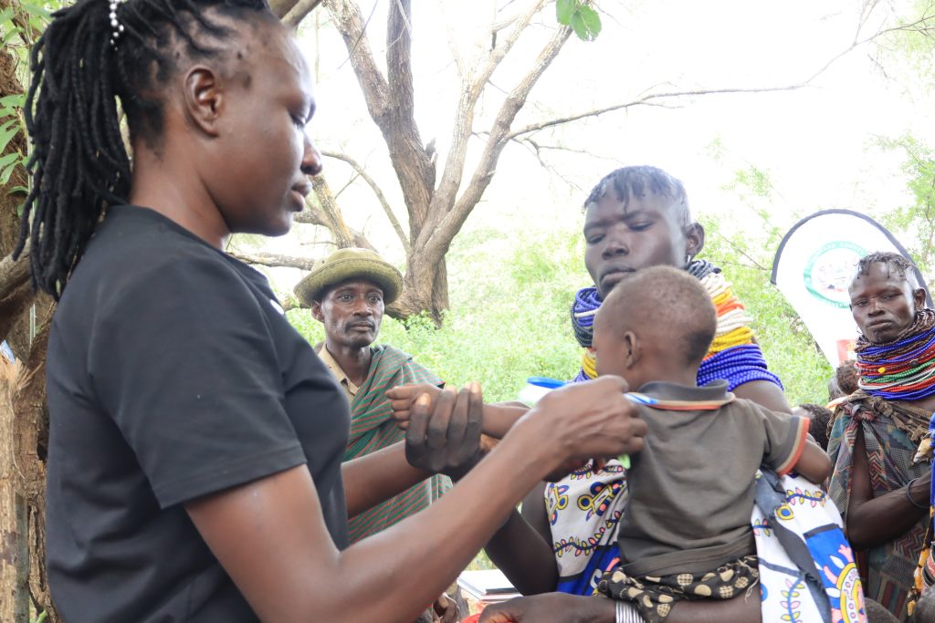 Under the blazing Turkana sun in Namortotio village, Community Health Promoter (CHP) Cecilia Ekwom Longolea walks from one home to another, checking on mothers and babies.
