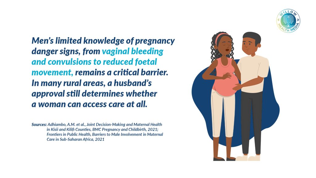 A 2021 study in Frontiers in Public Health found that men’s low awareness of pregnancy danger signs is a major barrier. These signs include vaginal bleeding, convulsions, severe headaches with blurred vision, high fever, severe abdominal pain, fast or difficult breathing, and reduced foetal movement. The research showed men often prioritise breadwinning over health activities they perceive as women’s work.