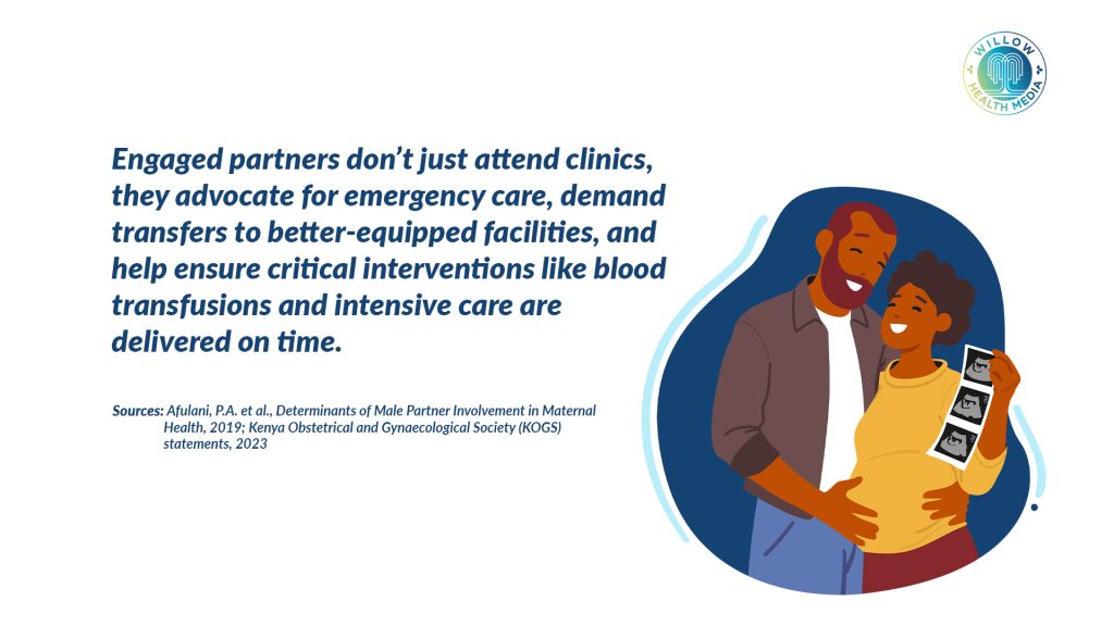 Involved partners also contribute to birth planning – saving money, identifying hospitals, and arranging transport. During emergencies like postpartum haemorrhage, men can advocate for their wives, demand necessary care, and facilitate urgent transfers to better-equipped facilities.