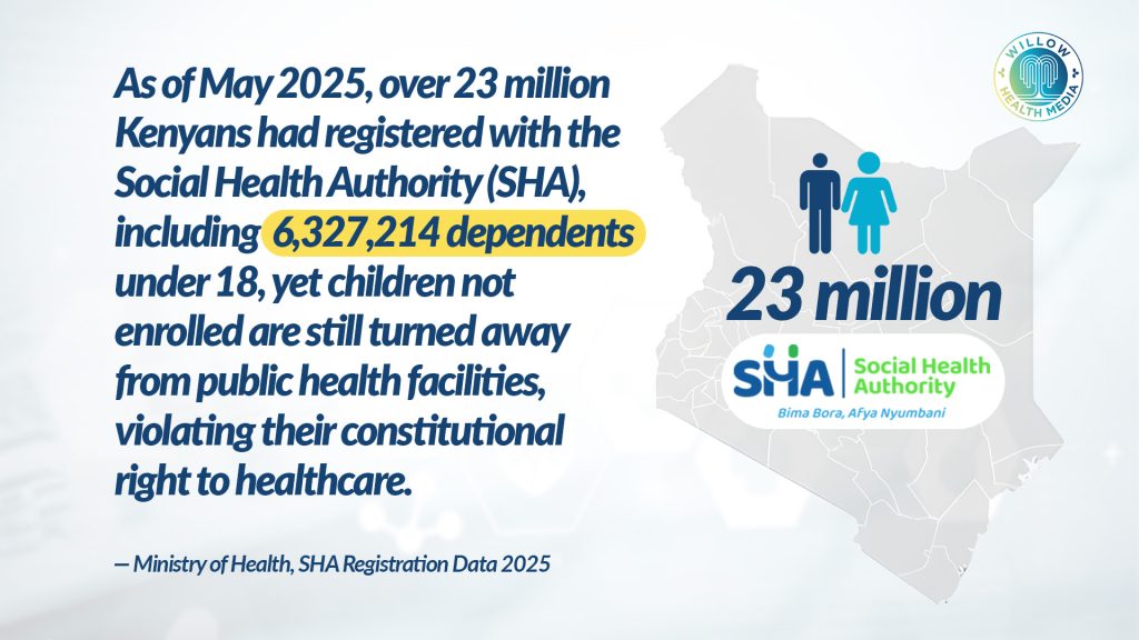 By the time this order was given in mid-January, over 17 million Kenyans had been registered to SHA. Latest figures as of May 2025 show that over 23 million Kenyans have been registered. Of these, the number of dependents under 18 years is 6,327,214 (68.6 per cent).