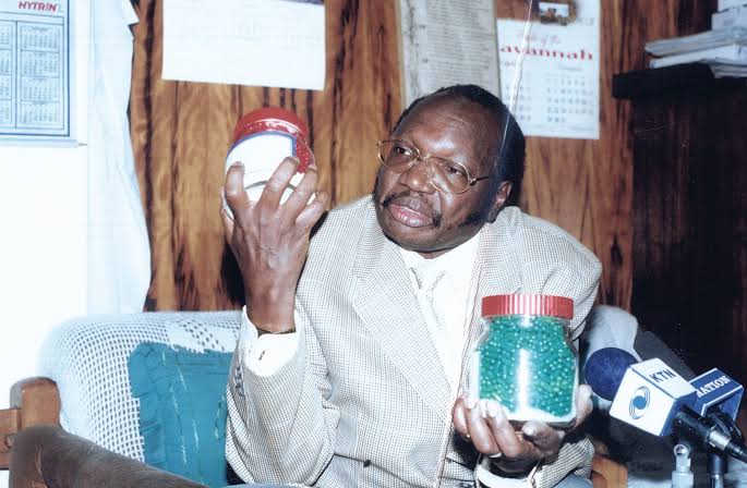 He would continue with his therapies with Pearl Omega and Kemron, going for Ksh30,000 a bottle in the black market, a tidy sum in the early 1990s, as he claimed he had healed seven HIV/AIDS patients. He didn’t provide scientific evidence to back his claim.