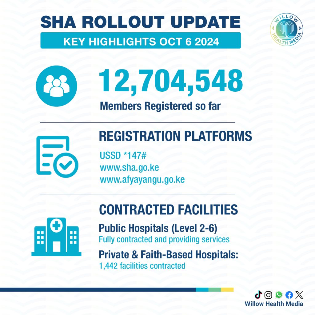 Dr Abdi said the list of all health facilities contracted and offering services is available on the SHA website, further urging the private and faith-based facilities to return duly signed contracts by Tuesday, October 8, 2024.