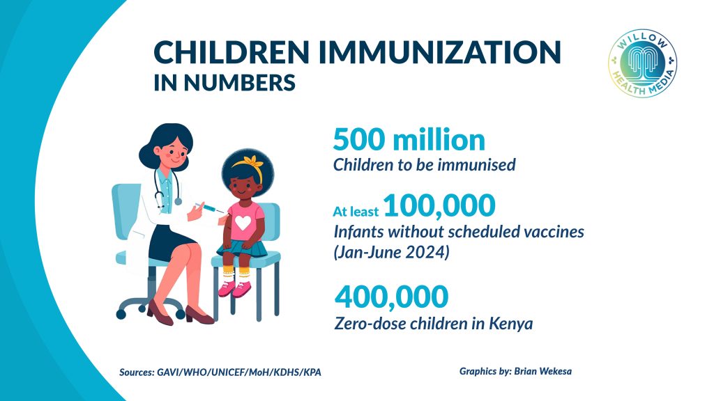Kenya also has around 400,000 children who have never received their first dose of DTP (diphtheria, tetanus, and pertussis) or pentavalent vaccine, according to the 2022 Kenya Demographic and Health Survey (KDHS). Most of these children live in slums, informal settlements, and conflict areas.