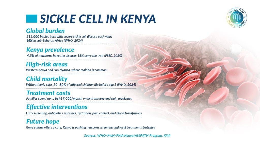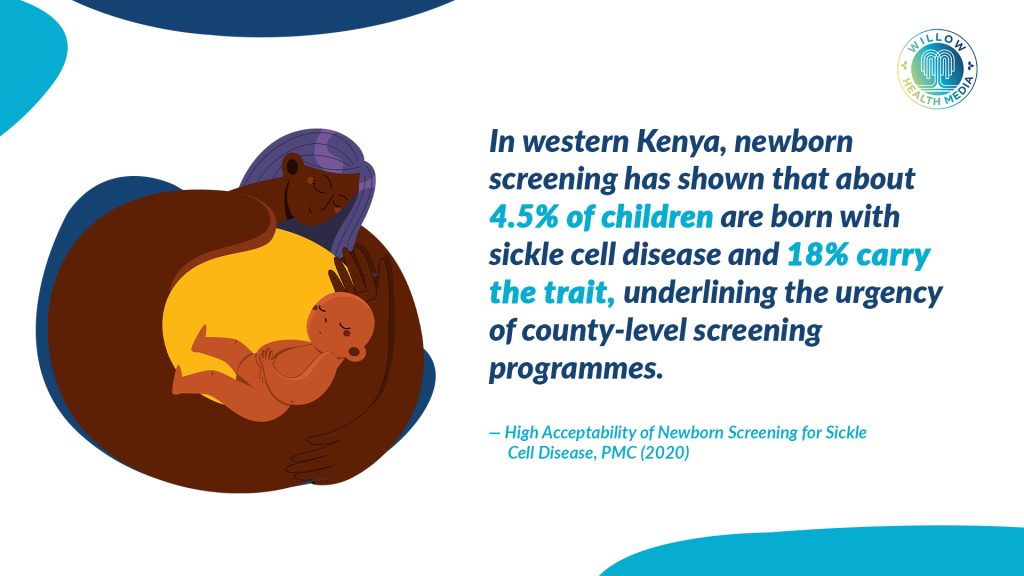 “In western Kenya, newborn screening has shown that about 4.5 per cent of children are born with sickle cell disease and 18 per cent carry the trait, notes the High Acceptability of Newborn Screening for Sickle Cell Disease report (PMC, 2020), underlining the urgency of county-level screening programmes.”