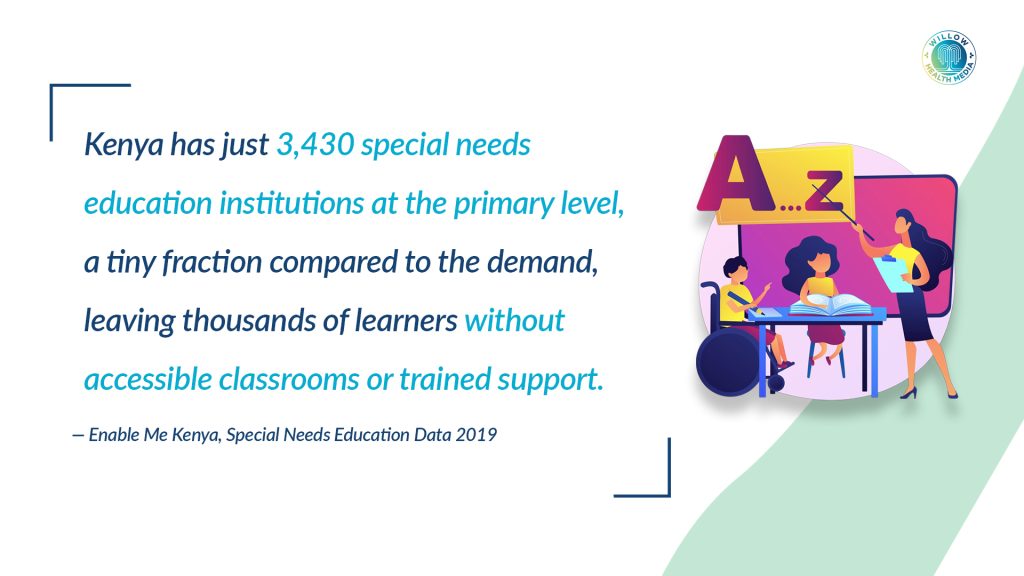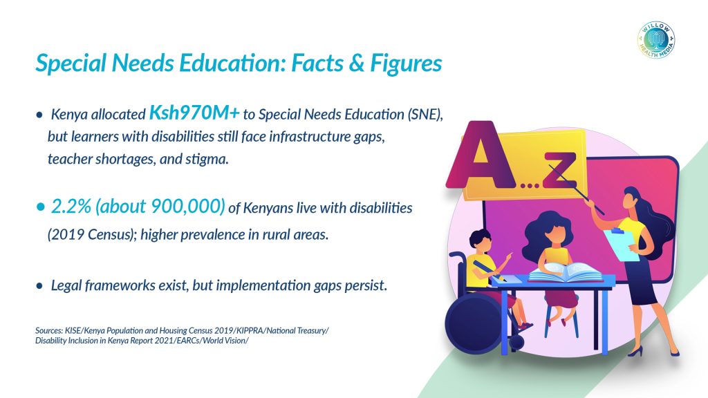 Enable Me Kenya, an organisation supporting persons with disabilities, reports that there were 3,430 special needs education teaching institutions at the primary level as of 2019. Yet the Kenya Institute of Special Education (KISE), which received Ksh647.61 million in the 2025/2026 budget, continues to face challenges in delivering services to remote areas despite intensifying its efforts.