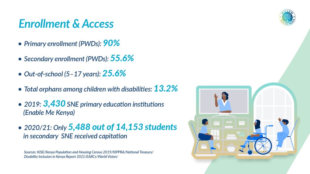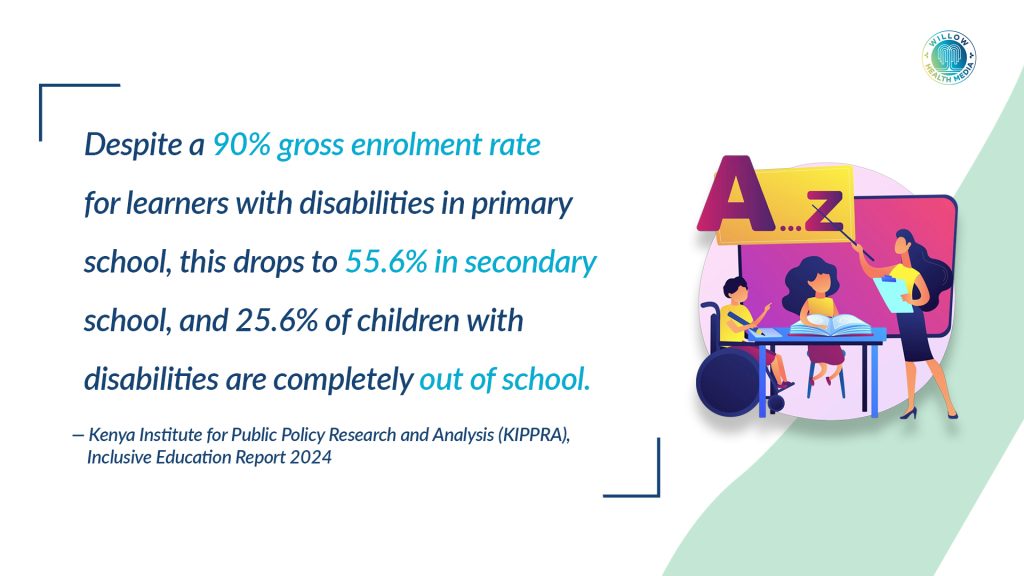 The government has made efforts, investing Ksh103.75 million in vocational training for learners with disabilities and achieving a 90 per cent gross enrollment rate at the primary level. However, this figure plummets to 55.6 per cent in secondary school, and an alarming 25.6 per cent of children with disabilities are entirely out of school.